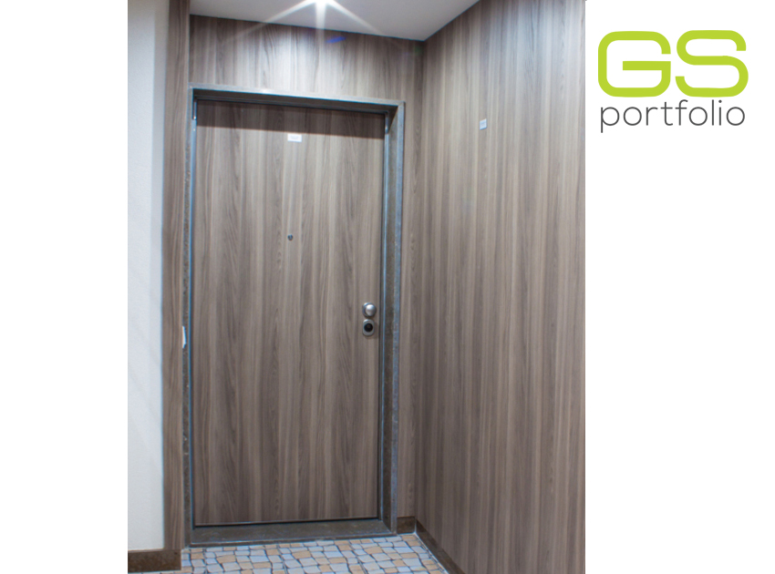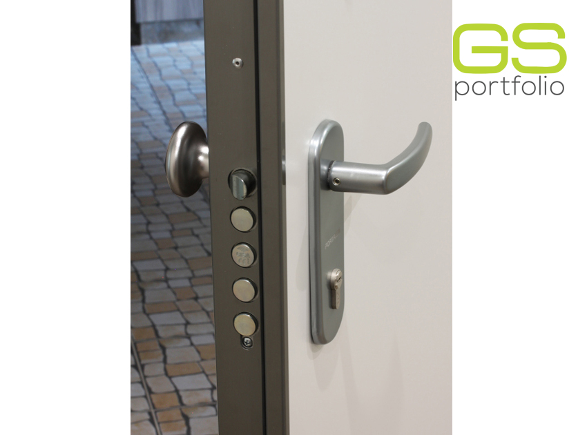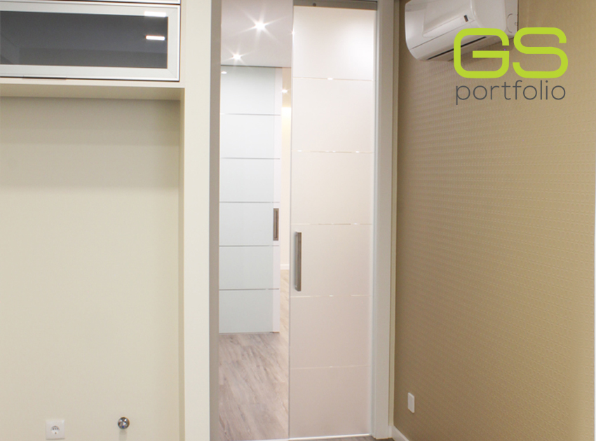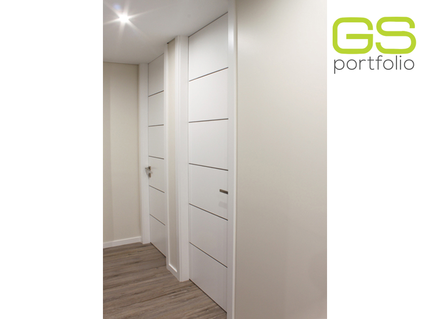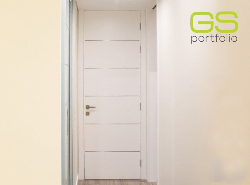 - Hinged door GS DOORS (up to the ceiling) in white lacquered matt. Magnetic lock.