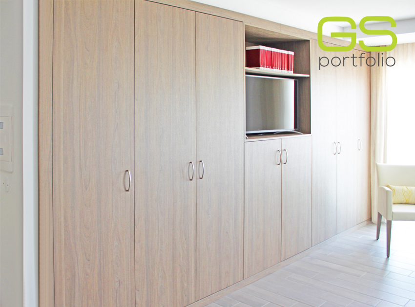 - Roupeiro embutido GS CONCEPT com portas batentes revestidas com folha de vinil da gama VINYL TOUCH – Olmo Escuro.