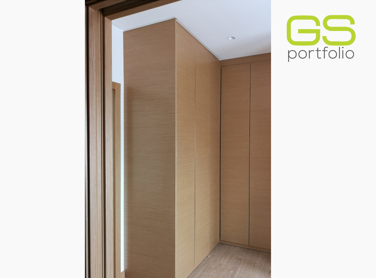 - Roupeiro de canto em U by GS CONCEPT com acabamento em vinil: Carvalho Natural.